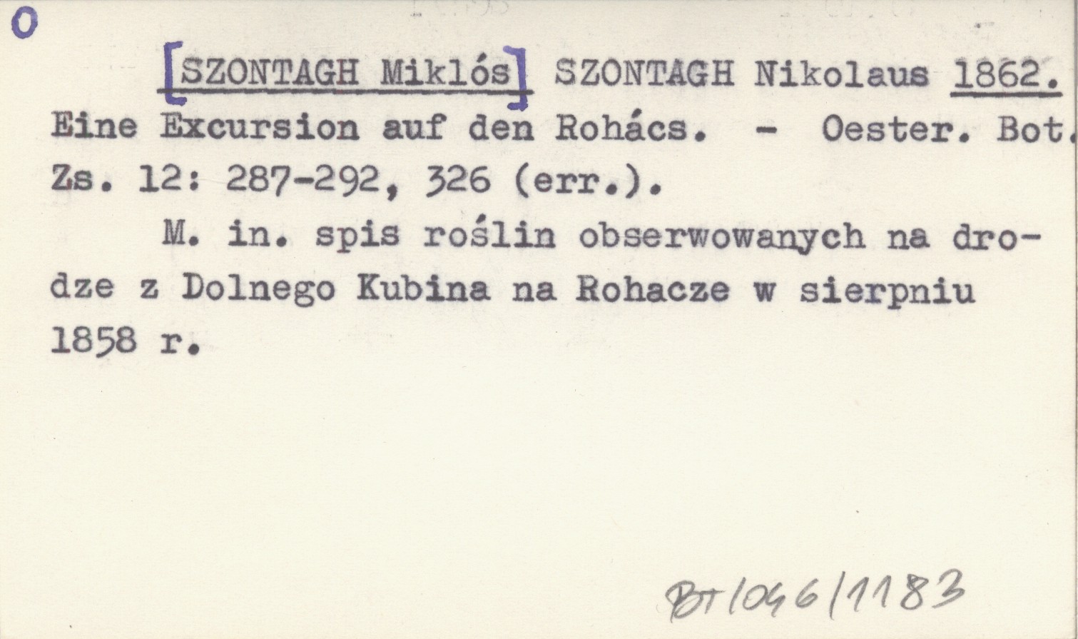Oesterreichische Botanische Zeitschrift, 12: 287-292, 326 (err.). M. in. spis roślin obserwowanych na drodze z Dolnego Kubina na Rohacze w sierpniu 1858 r.