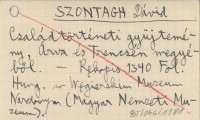 SZONTAGH Dávid Családtörténeti gyüjtemény, Árva és Trencsén megyéből.