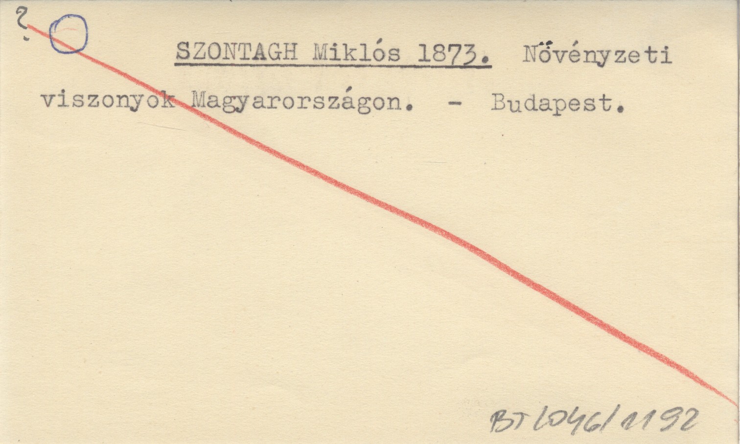 SZONTAGH Miklós 1873 Növényzeti viszonyok Magyarországon.