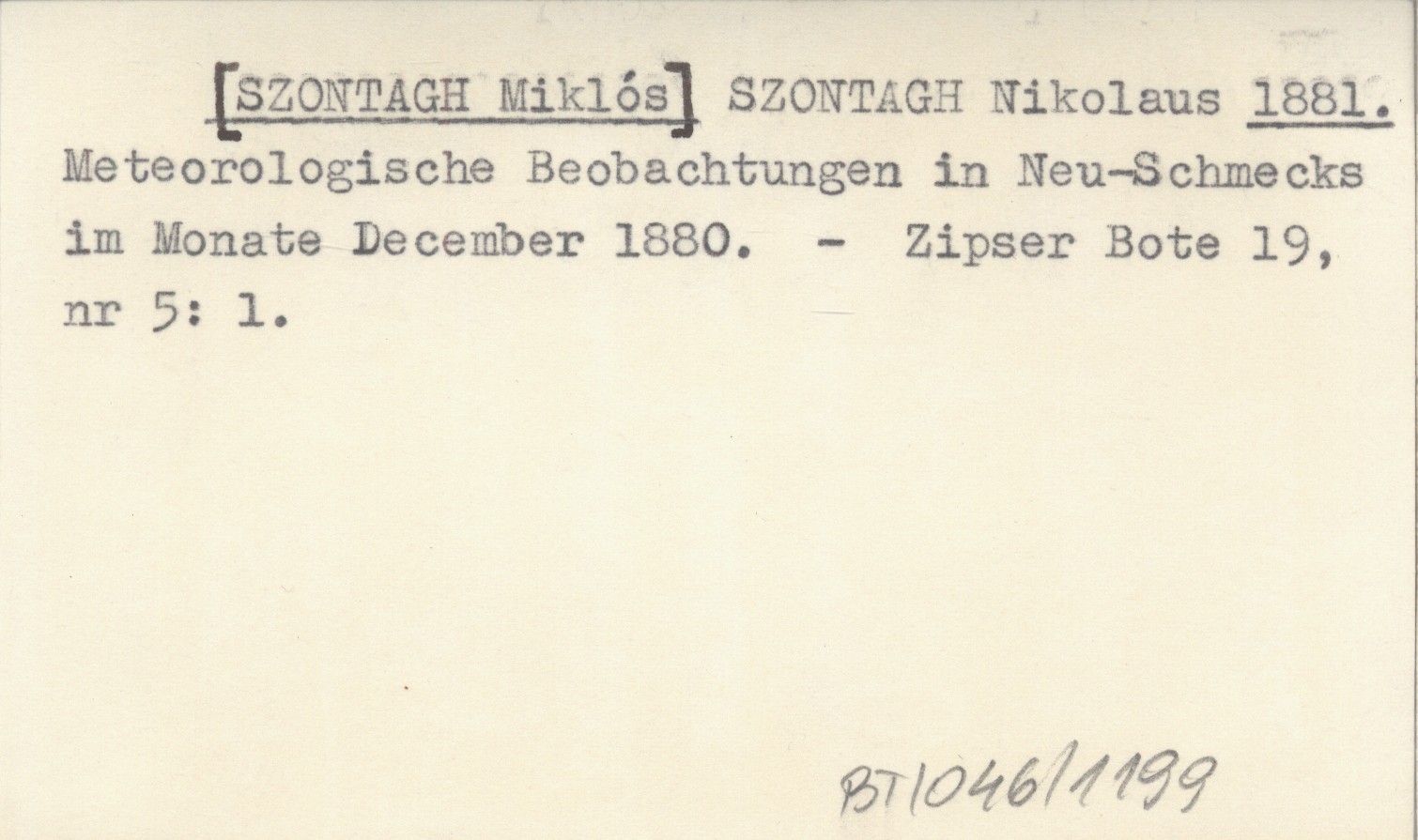 SZONTAGH Nikolaus [SZONTAGH Miklós] 1881 Meteorologische Beobachtungen in Neu-Schmecks im Monate December 1880.