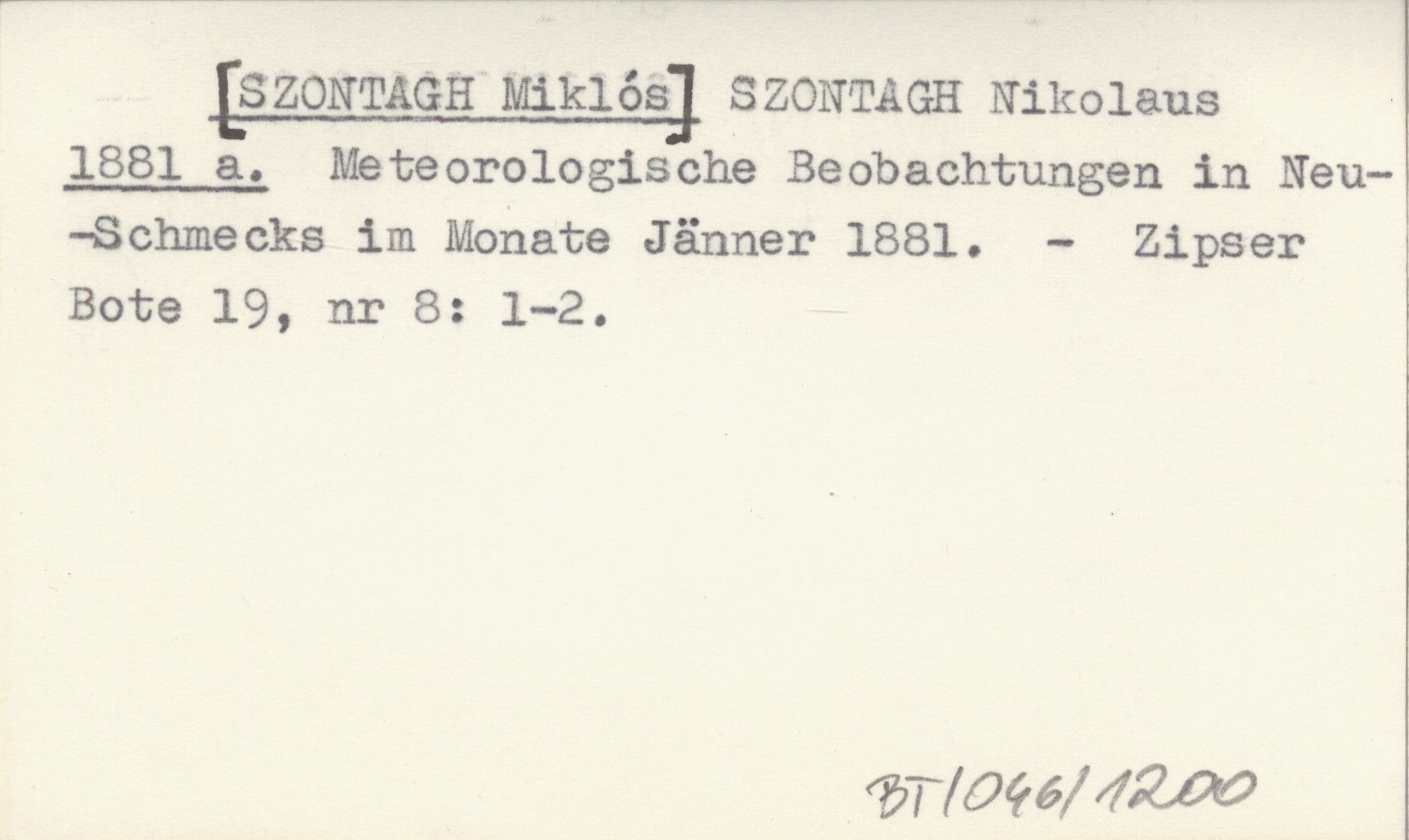 SZONTAGH Nikolaus [SZONTAGH Miklós] 1881 a Meteorologische Beobachtungen in Neu-Schmecks im Monate Jänner 1881.