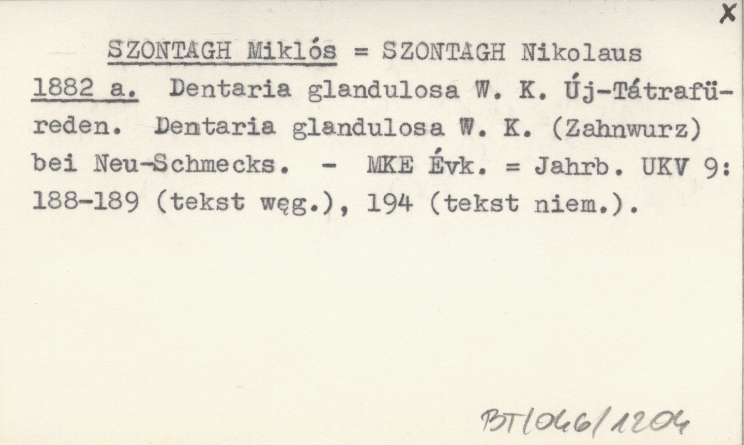SZONTAGH Nikolaus SZONTAGH Miklós 1882 a Dentaria glandulosa W. K. Új-Tátrafüreden. Dentaria glandulosa W. K. (Zahnwurz) bei Neu-Schmecks.