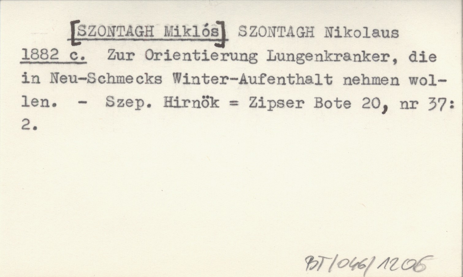 SZONTAGH Nikolaus [SZONTAGH Miklós] 1882 c Zur Orientierung Lungenkranker, die in Neu-Schemcks Winter-Aufenthalt nehmen wollen.