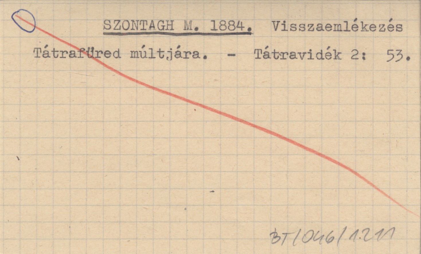 SZONTAGH M. 1884 Visszaemlékezés Tátrafüred múltjára.