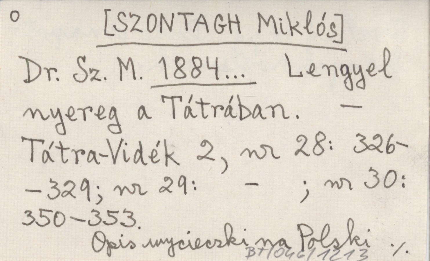 Dr. Sz. M. [SZONTAGH Miklós] 1884... Lengyel nyereg a Tátrában.