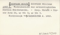 SZONTAGH Nikolaus [SZONTAGH Miklós] 1883 Die Climatischen Verhältnisse von Bad Neu-Schmecks auf Grund 10-jähriger Meteorologischer Beobachtungen.