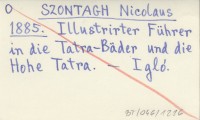SZONTAGH Nicolaus 1885 Illustrirter Führer in die Tatra-Bäder und die Hohe Tatra.