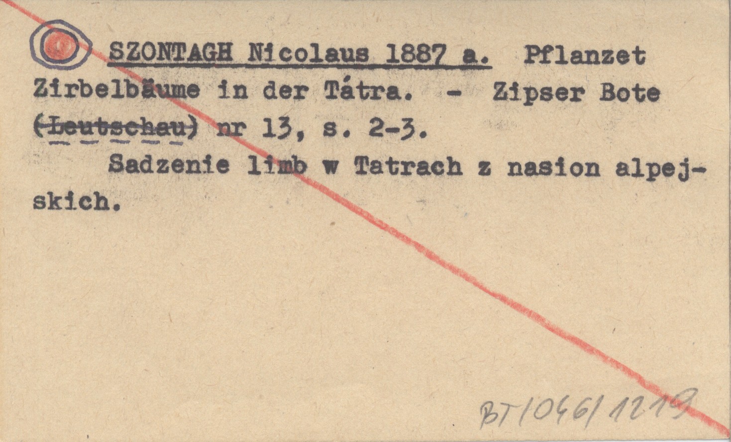 SZONTAGH Nicolaus 1887 a Pflanzet Zirbelbäume in der Tátra.