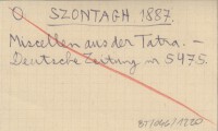 SZONTAGH 1887 Miscellen aus der Tatra.