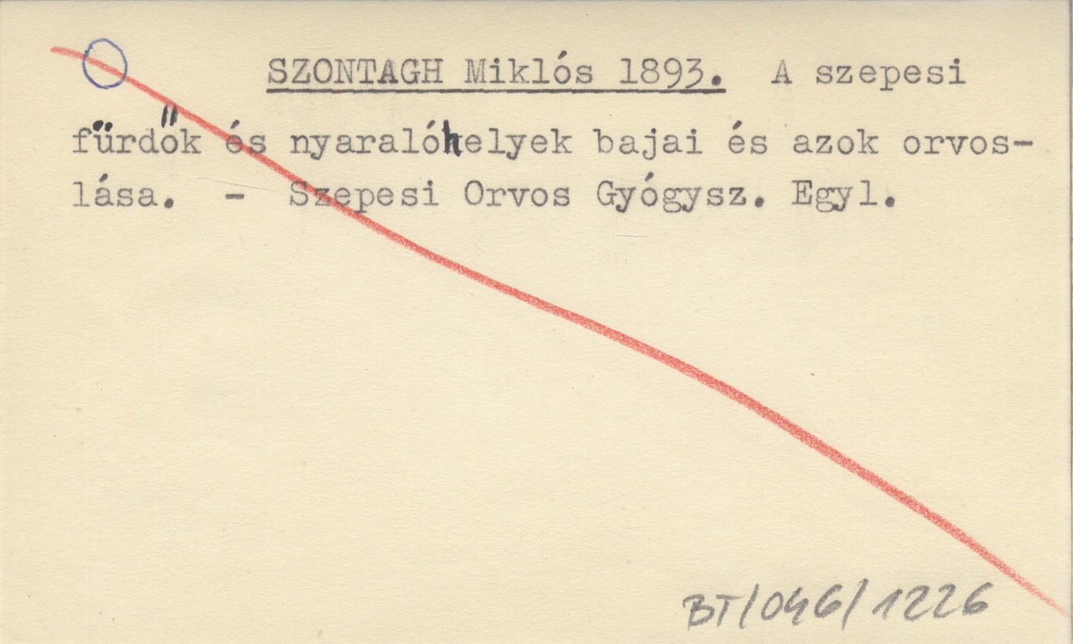 SZONTAGH Miklós 1893 A szepesi fürdők és nyaralóhelyek bajai és azok orvoslása.