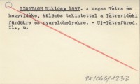 SZONTAGH Miklós 1908 Tátrakalauz utmutató a Magas Tátrába s a Tátravidéki fürdőkbe. A szerző halála után átnézte Dr. Jármay László. IV. uj kiadás.