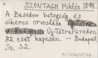 SZONTAGH Miklós 1899... A Basedow betegség és sikeres orvoslása Új-Tátrafüreden 82 eset kapcsán.