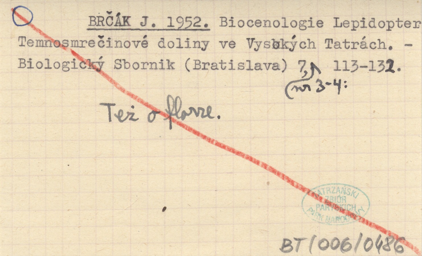 BRÈAK J. 1952 Biocenologie Lepidopter Temnosmreèinové doliny ve Vysokęch Tatrách.
