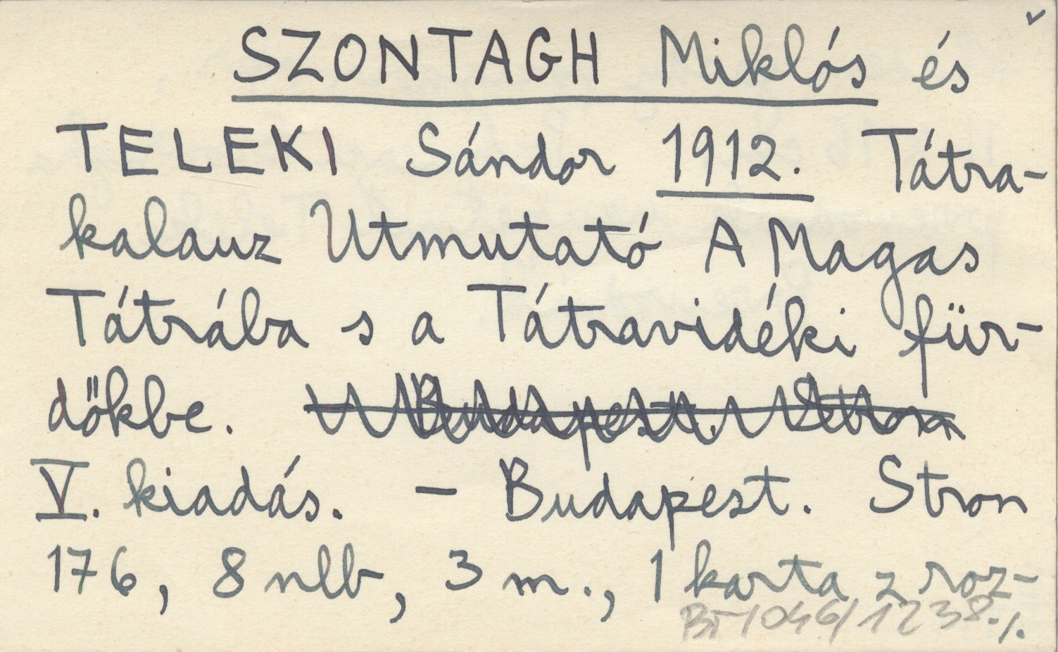 SZONTAGH Miklós TELEKI, Sándor. ; 1912 Tátrakalauz Utmutató A Magas Tátrába s a Tátravidéki fürdőkbe. V. kiadás.