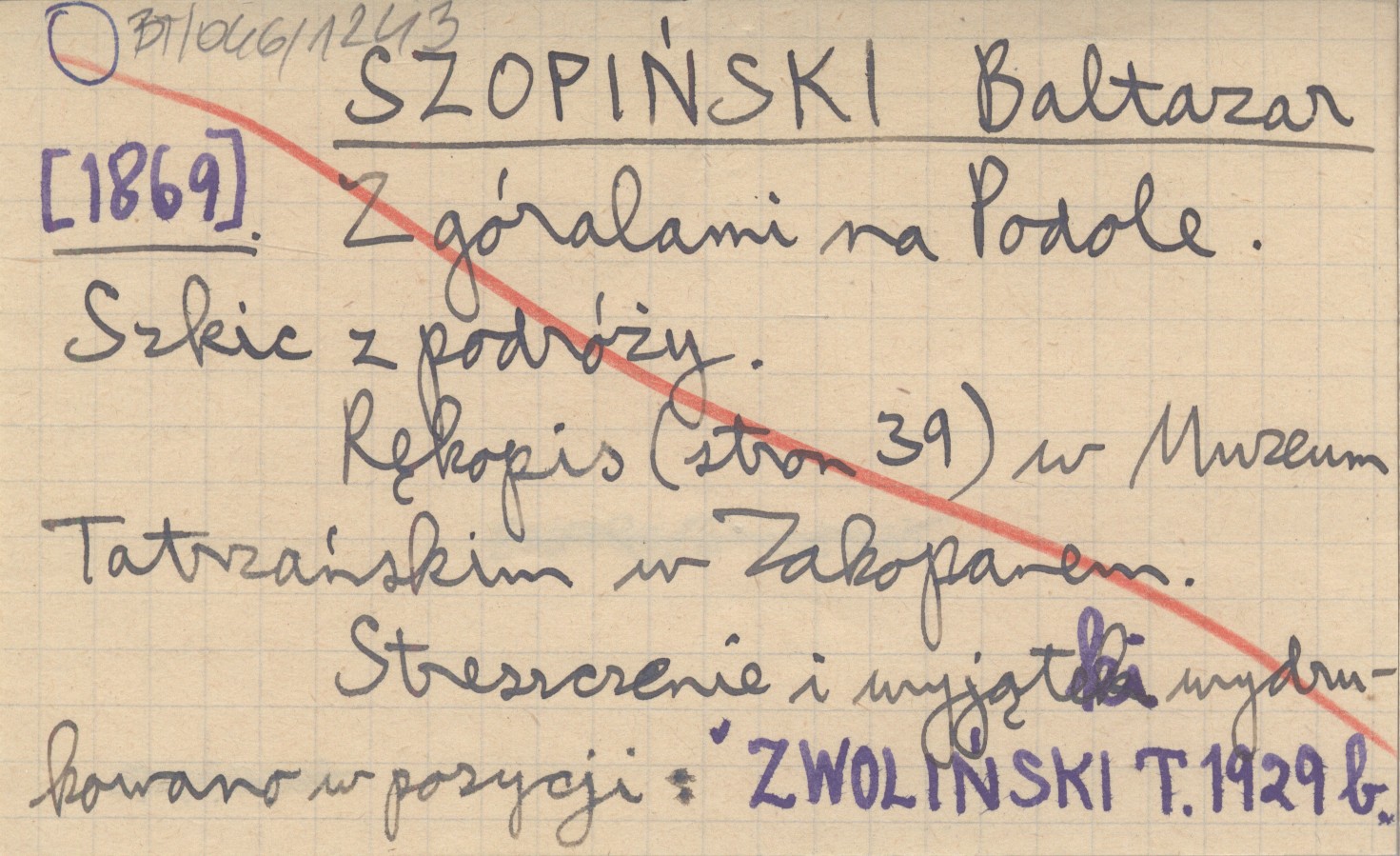 , 39 s. Rękopis w Muzeum Tatrzańskim w Zakopanem. Streszczenie i wyjątki wydrukowano w pozycji: ZWOLIŃSKI T. 1929 b.
