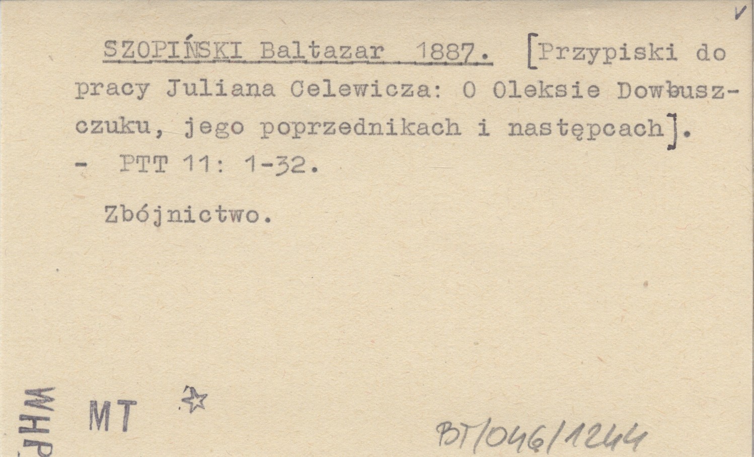 SZOPIŃSKI Baltazar 1887 [Przypiski do pracy Juliana Celewicza: O Oleksie Dowbuszczuku, jego poprzednikach i następcach.]