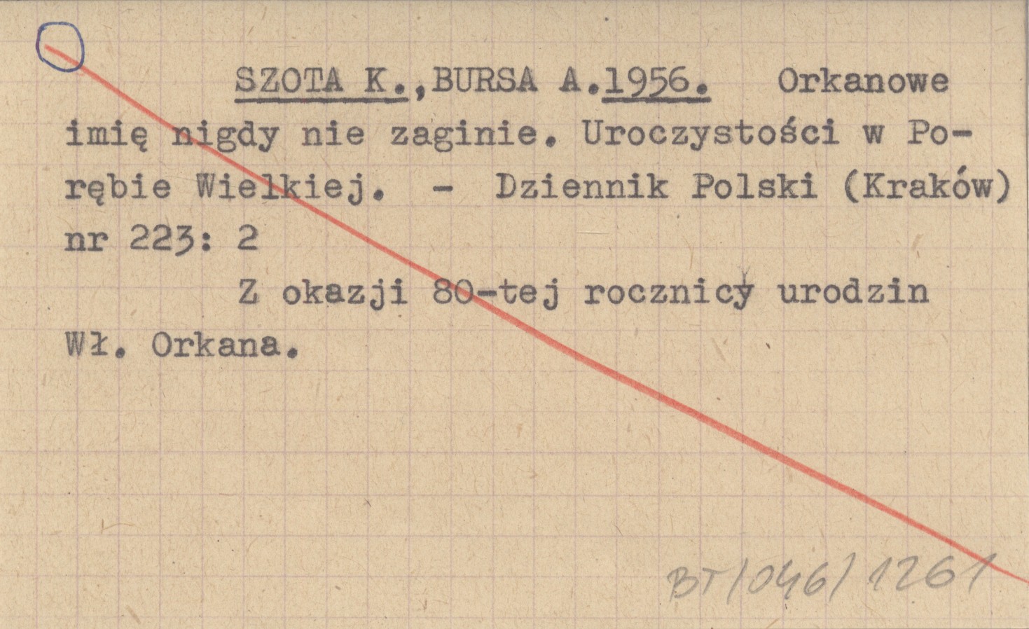 SZOTA K. BURSA, A. ; 1956 Orkanowe imię nigdy nie zaginie. Uroczystości w Porębie Wielkiej.