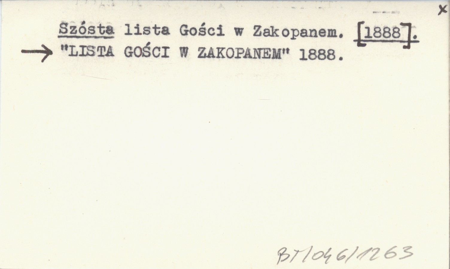 Lista Gości w Zakopanem 1888