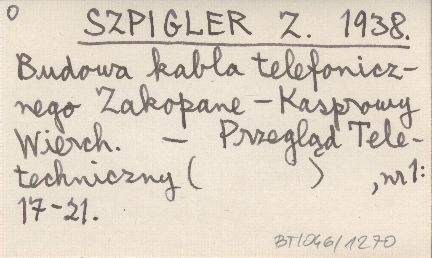 SZPIGLER Z. 1938 Budowa kabla telefonicznego Zakopane - Kasprowy Wierch.