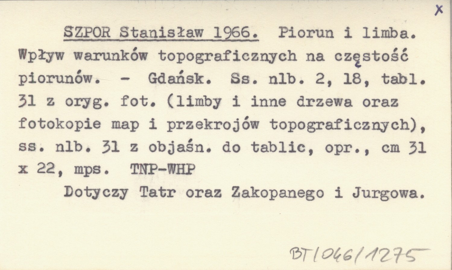 SZPOR Stanisław 1966 Piorun i limba. Wpływ warunków topograficznych na częstość piorunów.