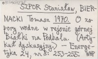 SZPOR Stanis³aw BIERNACKI, Tomasz. ; 1970 O zapory wodne w rejonie górnej Bia³ki na Podhalu. (Artyku³ dyskusyjny).