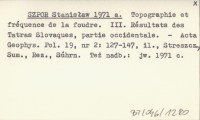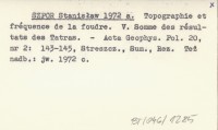 SZPOR Stanis³aw 1971 c Topographie et fréquence de la foudre. III. Résultats des Tatras Slovaques, partie occidentale.