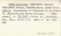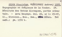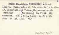 SZPOR Stanis³aw WI¦NIEWSKI, Andrzej. ; 1972 b Topographie et fréquence de la foudre. IV. Résultats des Tatras Slovaques, partie orientale.