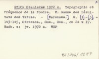SZPOR Stanis³aw WI¦NIEWSKI, Andrzej. ; 1972 Topographie et fréquence de la foudre. IV. Résultats des Tatras Slovaques, partie orientale.