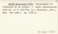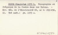 SZPOR Stanis³aw 1975 b Topographie et fréquence de la foudre dans les Tatras.