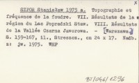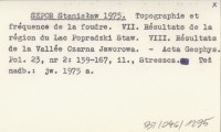 SZPOR Stanis³aw 1975 Topographie et fréquence de la foudre. VII. Résultats de la région du Lac Popradzki Staw. VIII. Résultats de la Vallée Czarna Jaworowa.