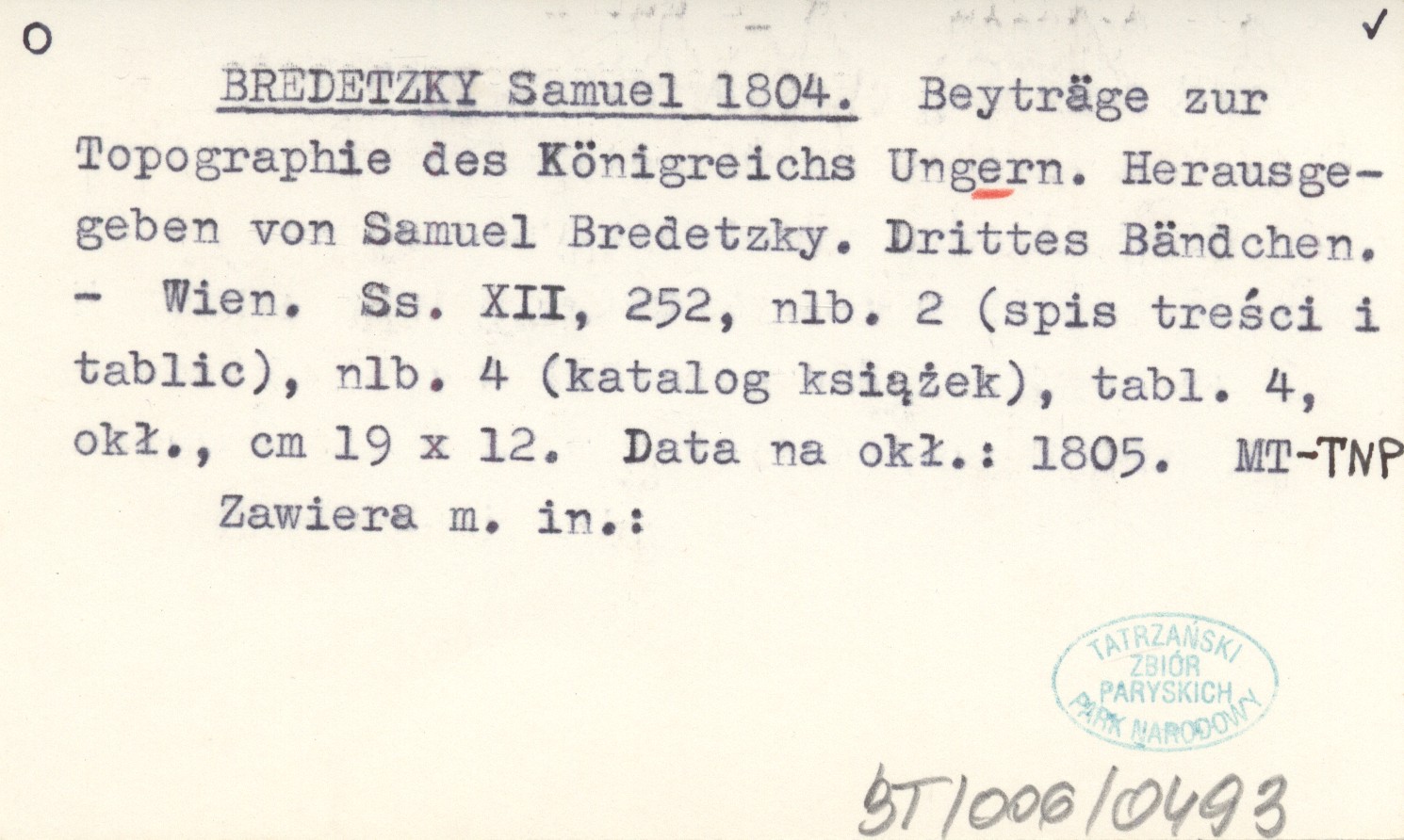 BREDETZKY Samuel 1804 Beyträge zur Topographie des Königreichs Ungern. Herausgegeben von Samuel Bredetzky. Drittes Bändchen.