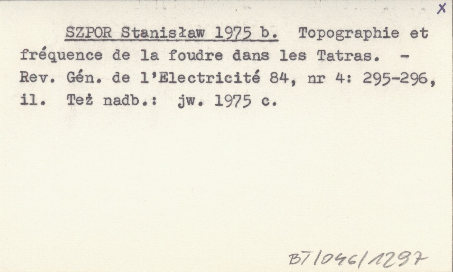 SZPOR Stanisław 1975 b Topographie et fréquence de la foudre dans les Tatras.