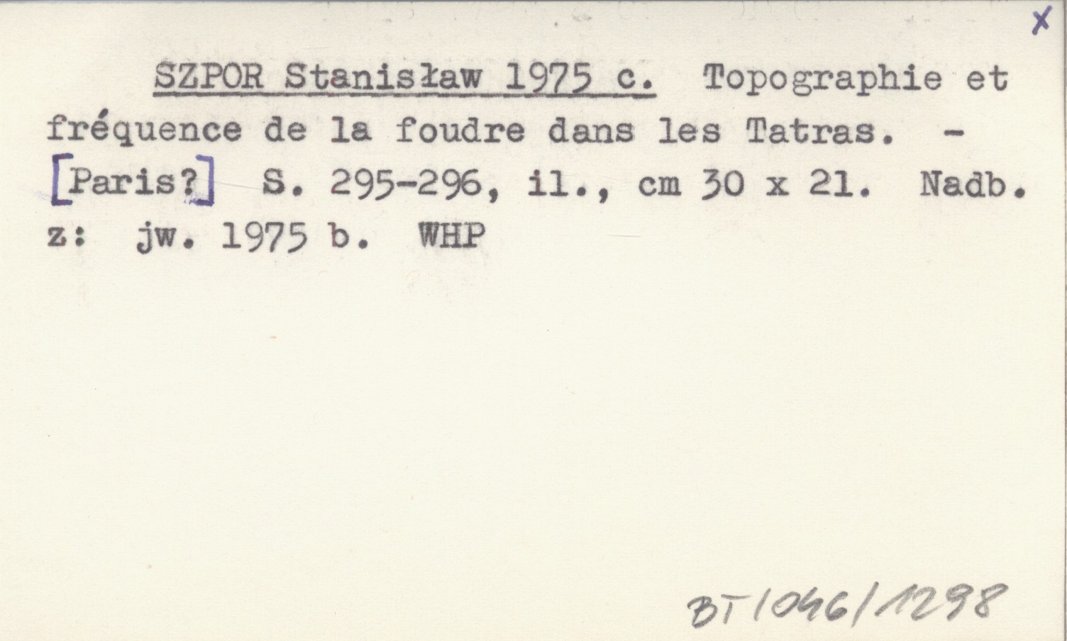 SZPOR Stanisław 1975 c Topographie et fréquence de la foudre dans les Tatras.