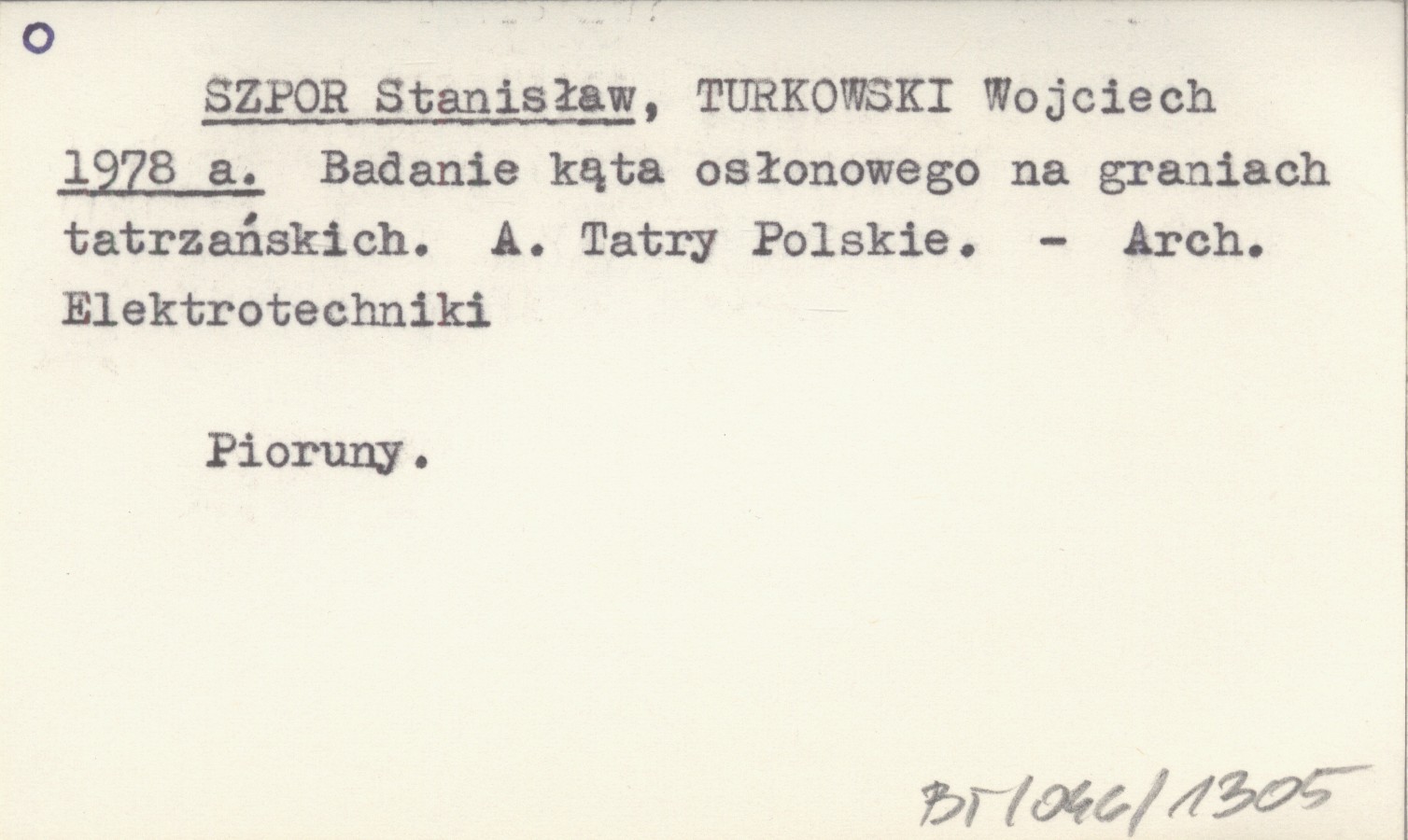 SZPOR Stanisław TURKOWSKI, Wojciech. ; 1978 a Badania kąta osłonowego na graniach tatrzańskich. A. Tatry Polskie.