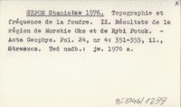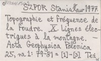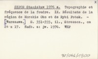 SZPOR Stanisław 1976 a Topographie et fréquence de la foudre. IX. Résultats de la région de Morskie Oko et de Rybi Potok.
