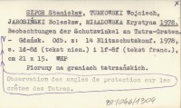 SZPOR Stanisław TURKOWSKI, Wojciech. ; 1978 a Badania kąta osłonowego na graniach tatrzańskich. A. Tatry Polskie.
