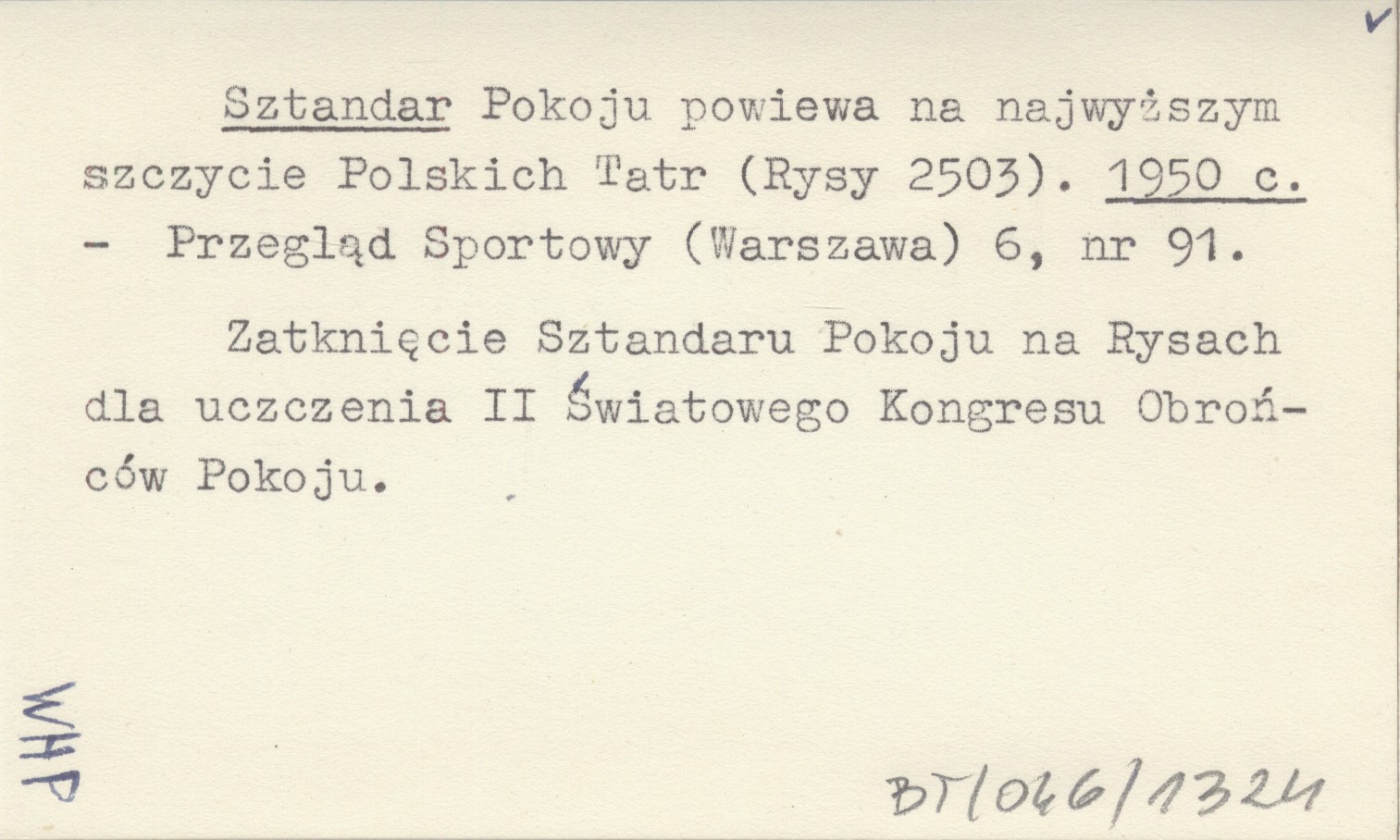 Przegląd Sportowy (Warszawa) , 6, nr 91. Zatknięcie Sztandaru Pokoju na Rysach dla uczczenia II Światowego Kongresu Obrońców Pokoju.