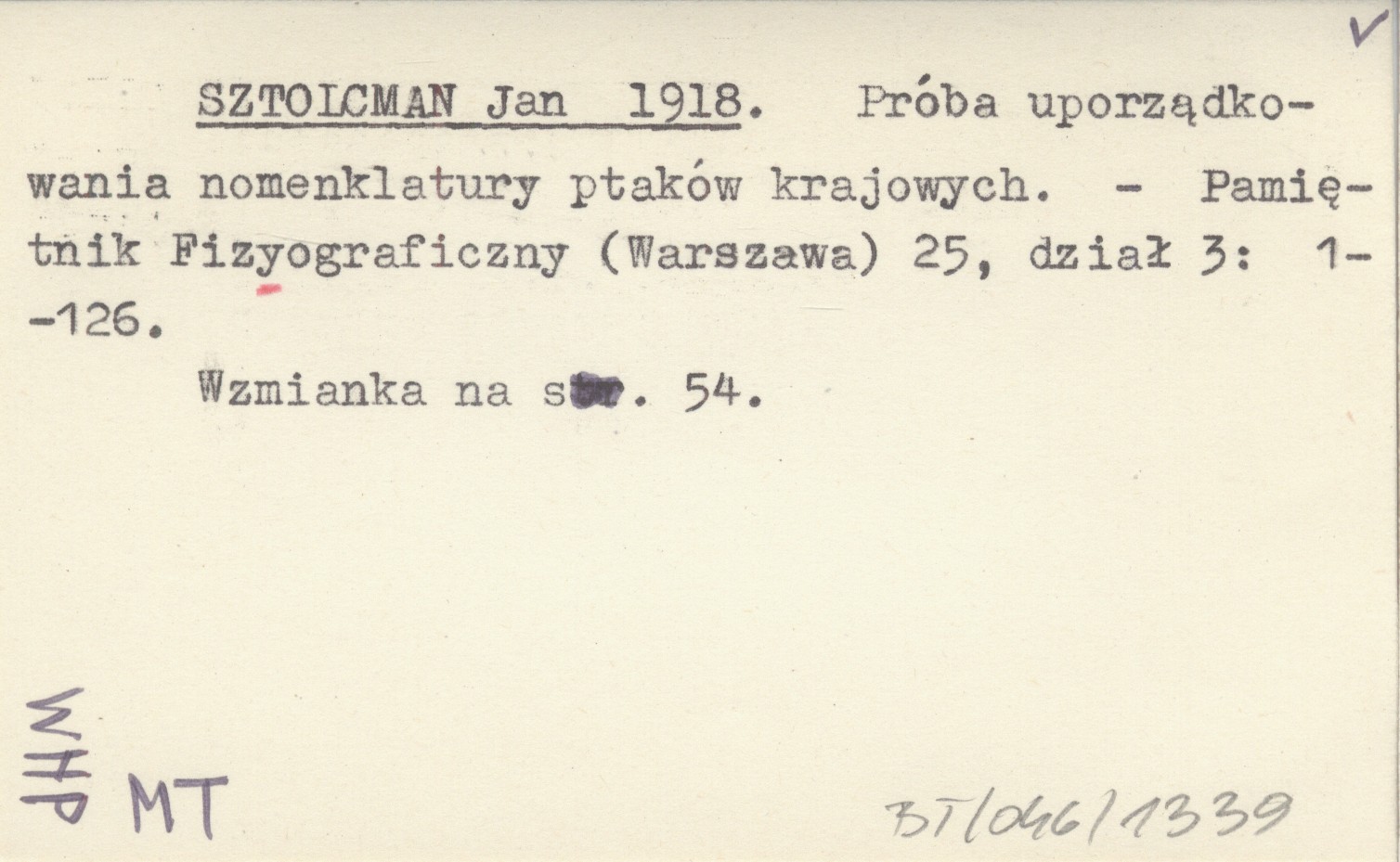 SZTOLCMAN Jan 1918 Próba uporządkowania nomenklatury ptaków krajowych.
