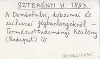 SZTERÉNYI H. 1883 A Deménfalvi, dobsinai és sziliczei jégbarlangokról.