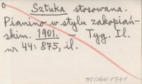 Sztuka stosowana. Pianino w stylu zakopiańskim. 1901
