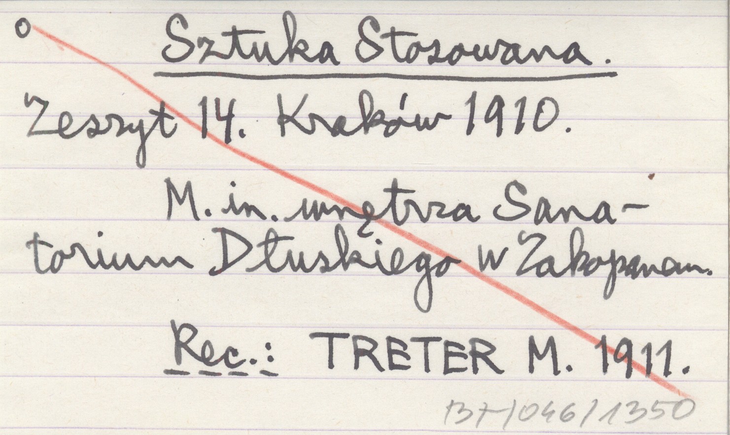 Kraków Sztuka Stosowana, Z. 14. m. in. wnętrza Sanatorium Dłuskiego w Zakopanem. REC: TRETER M. 1911