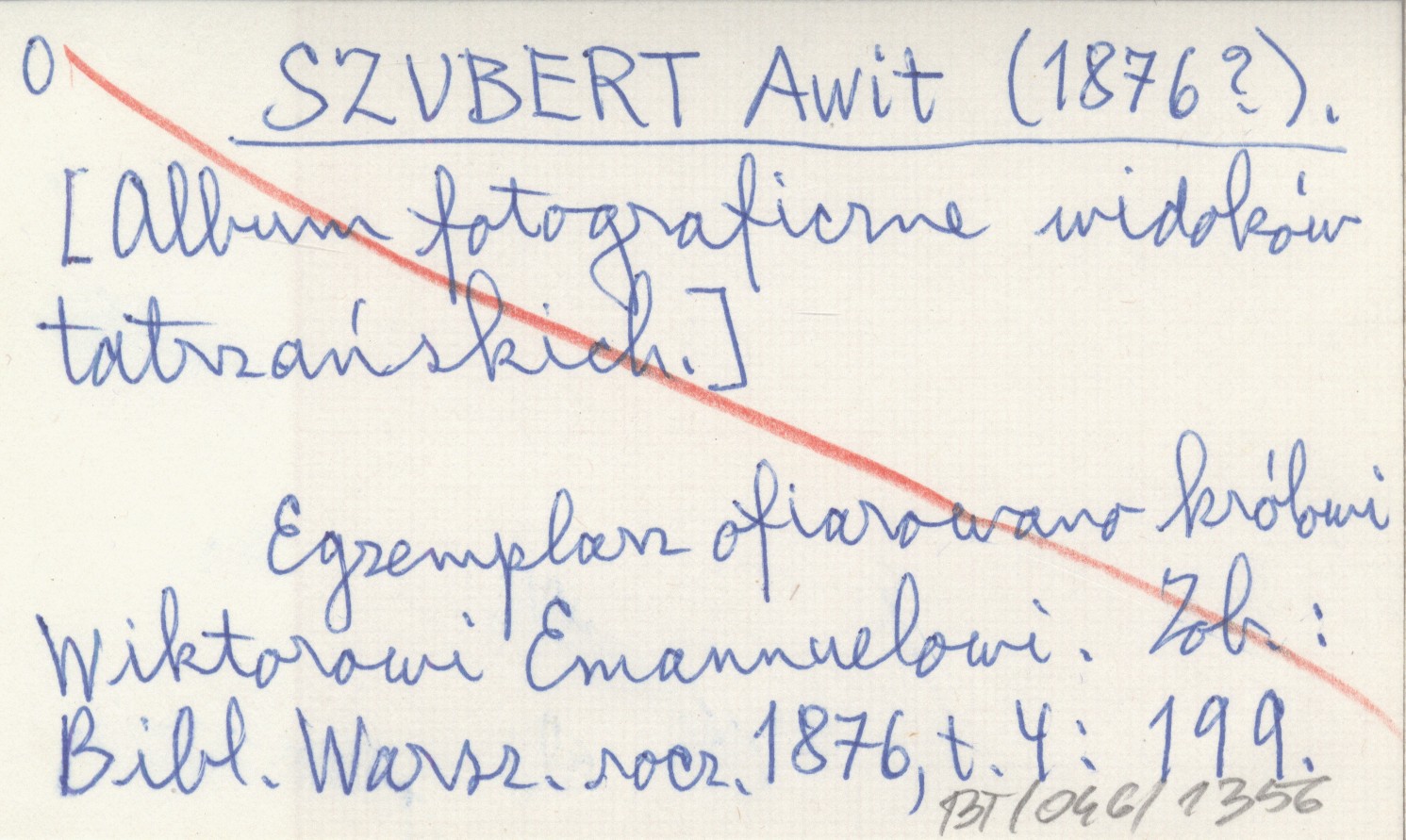 , Egzemplarz ofiarowano królowi Wiktorowi Emanuelowi. Zob.: Biblioteka Warszawska r. 1876, t. 4: 199. Biblioteka Warszawska 1876