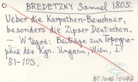BREDETZKY Samuel 1805 Ueber die Karpathen-Bewohner, besonders die Zipser Deutschen.