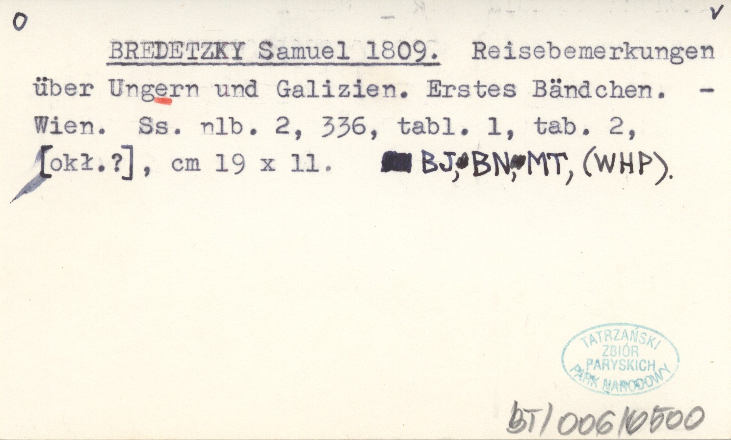 BREDETZKY Samuel 1809 Reisebemerkungen über Ungern und Galizien.