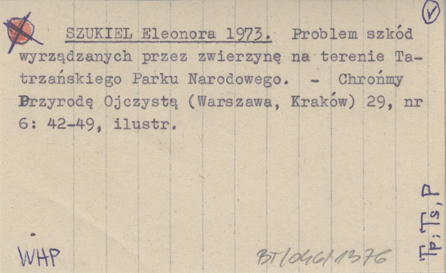 SZUKIEL Eleonora 1973 Problem szkód wyrządzonych przez zwierzynę na terenie Tatrzańskiego Parku Narodowego.