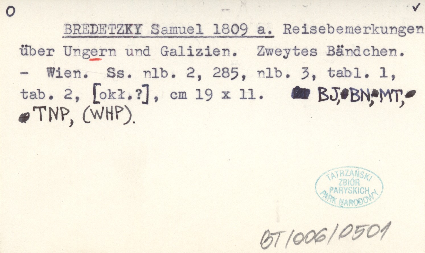 BREDETZKY Samuel 1809 a Reisebemerkungen über Ungern und Galizien.
