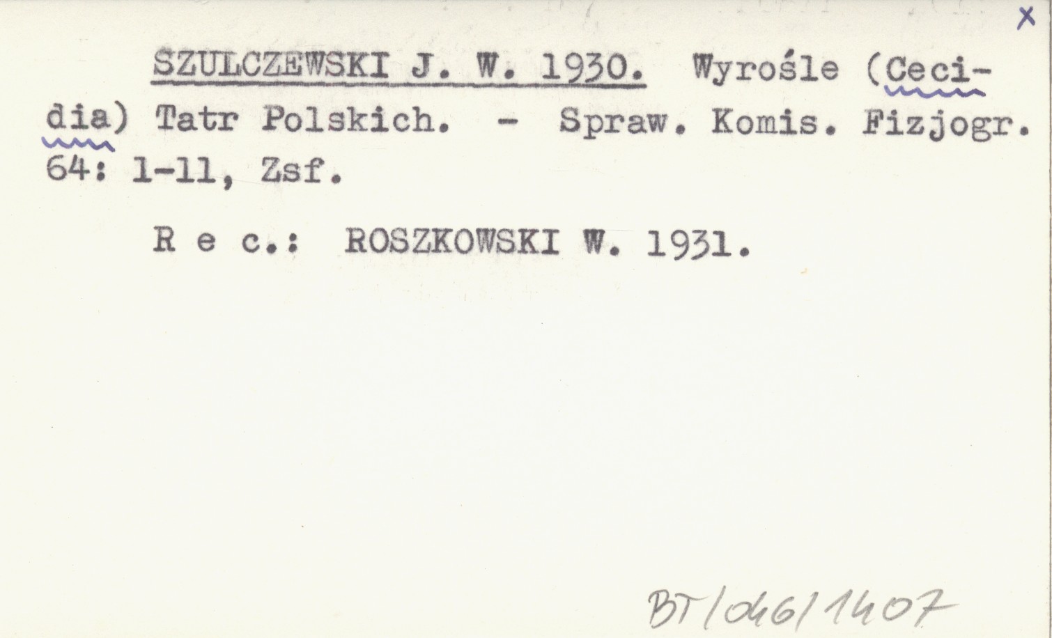 Sprawozdanie Komisji Fizjograficznej, 64: 1-11, Zsf. REC: ROSZKOWSKI W. 1931