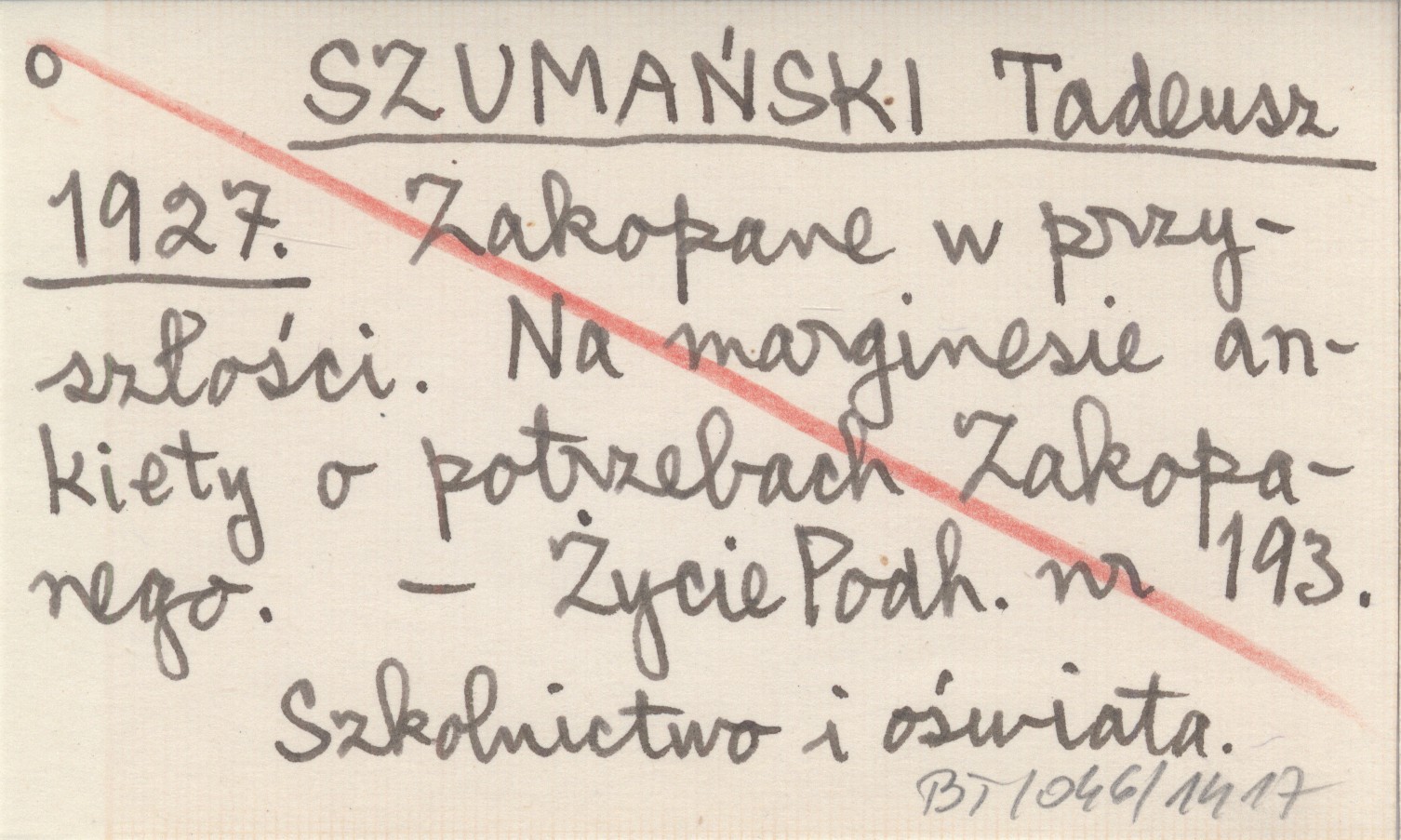 SZUMAŃSKI Tadeusz 1927 Zakopane w przyszłości. Na marginesie ankiety o potrzebach Zakopanego.