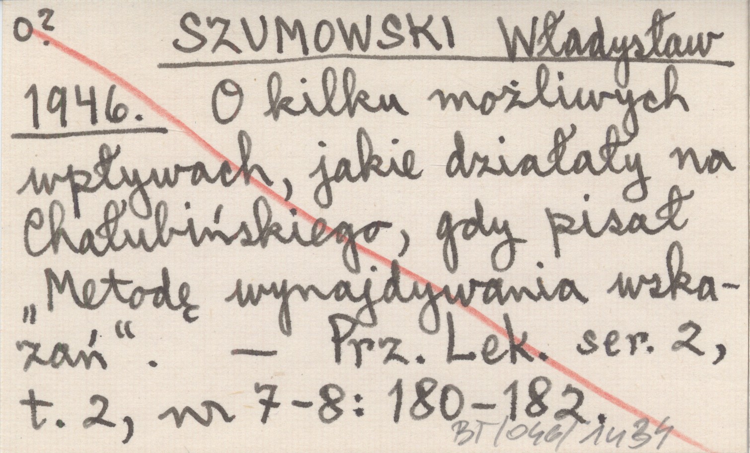 SZUMOWSKI Władysław 1946 O kilku możliwych wpływach, jakie działały na Chałubińskiego, gdy pisał "Metodę wynajdywania wskazań".