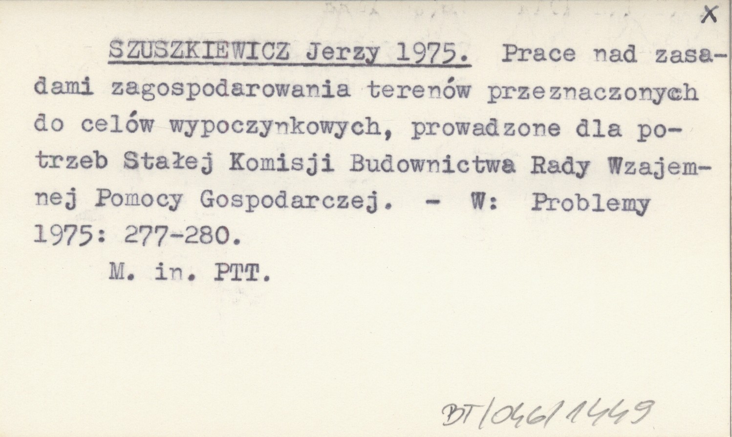 SZUSZKIEWICZ Jerzy 1975 Prace nad zasadami zagospodarowania terenów przeznaczonych do celów wypoczynkowych, prowadzone dla potrzeb Stałej Komisji Budownictwa Rady Wzajemnej Pomocy Gospodarczej.